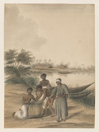 Groep Creolen bij een rivieroever…