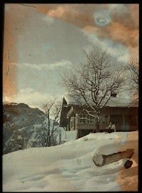 Gezicht op een chalet in de sneeuw