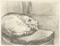 Liggende kat, naar links