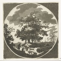 Landschap met ploegende boer