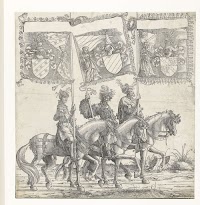 Drie mannen te paard dragen de…