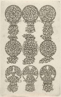 Vijf ornamenten met bladranken