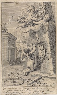 Engel kroont twee putti omgeven…