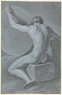 Zittend mannelijk naakt met passer