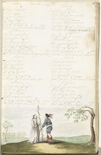 Herder knielend voor een herderin