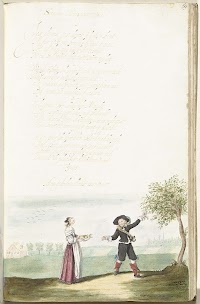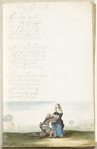 Heer knielend voor een dame